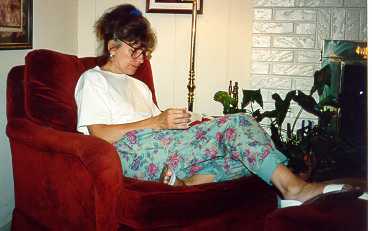 I usually do my writing while lying in bed at night, or sitting in a big squishy chair in my living room, or doing the dishes, or driving the car. My characters talk inside my head and the stories unfold. Then I write them in longhand. Only when they are almost ready to go to the publisher do my stories get typed into the computer.